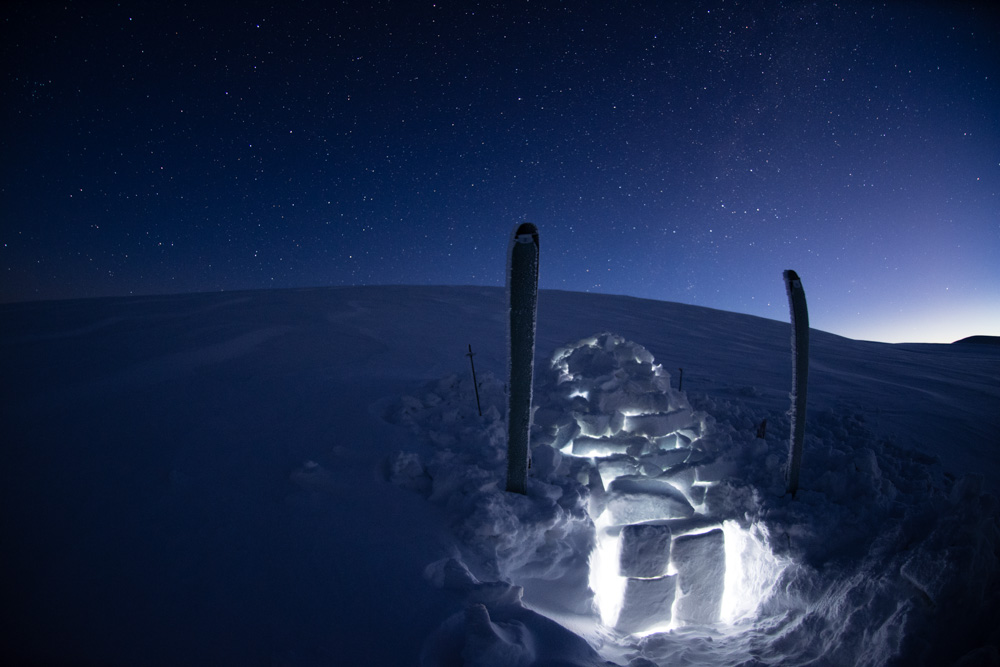 予報通り寒気が入ってきたようで夕方より冷え込む。入口をしっかり塞がなかったためか、イグルー内の気温は-10℃。テント内の-10℃と比して格段に過ごしやすい気もする。